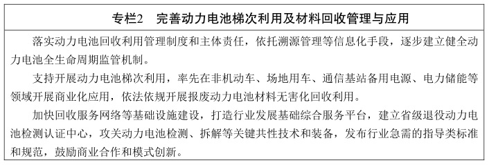 引导社会资源加快延展新能源汽车金融保险、维修保养、检验检测、二手车估值交易等后市场服务链。完善报废新能源车辆拆解回收流程,加快建设省级动力电池溯源监管平台,将全省动力电池回收利用相关企业纳入平台统一管理,支持各地市建设大型动力电池回收利用区域综合服务中心站,推动回收服务网点实现设区市全覆盖,建成安全规范、高效运行的回收利用体系。