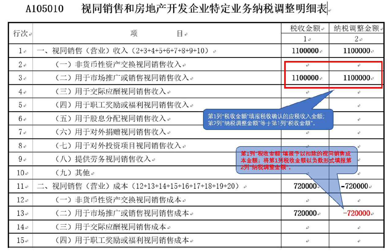 视同销售和房地产开发企业特定业务纳税调整明细表A105010