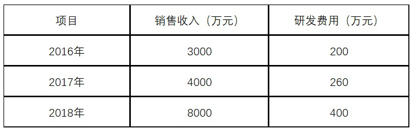 【案例】甲新材料公司成立于2010年,为高新技术企业,主营业务为航空用铝镁轻合金材料深加工。企业仅生产销售航空用铝镁轻合金材料这一种产品。2018年实现销售收入8000万元,按照税法规定计算的应按税所得额为1000万元,当年企业总人数100人,研发人员22人。最近三年研发费用及销售额如下: