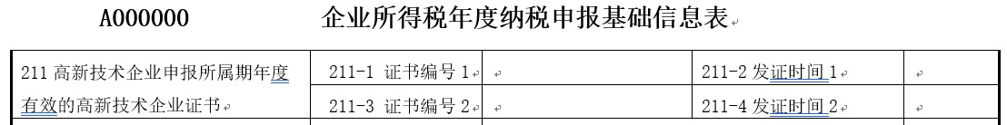 在申报所属期年度,如企业同时拥有两个高新技术企业证书,则两个证书情况均应填报。如:纳税人2015年10月取得高新技术企业证书,有效期3年,2018年再次参加认定并于2018年11月取得新高新技术企业证书,纳税人在进行2018年度企业所得税汇算清缴纳税申报时,应将两个证书的“编号”及“发证时间”分别填入“211-1”“211-2”“211-3”“211-4”项目中。纳税人符合上述填报要求的,无论是否享受企业所得税优惠政策,均应填报本项。