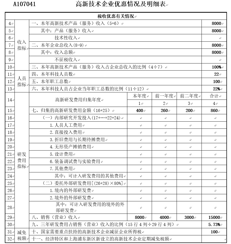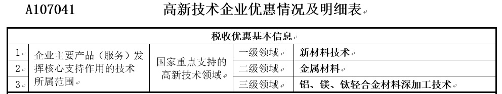 2.填报《A107041高新技术企业优惠情况及明细表》。