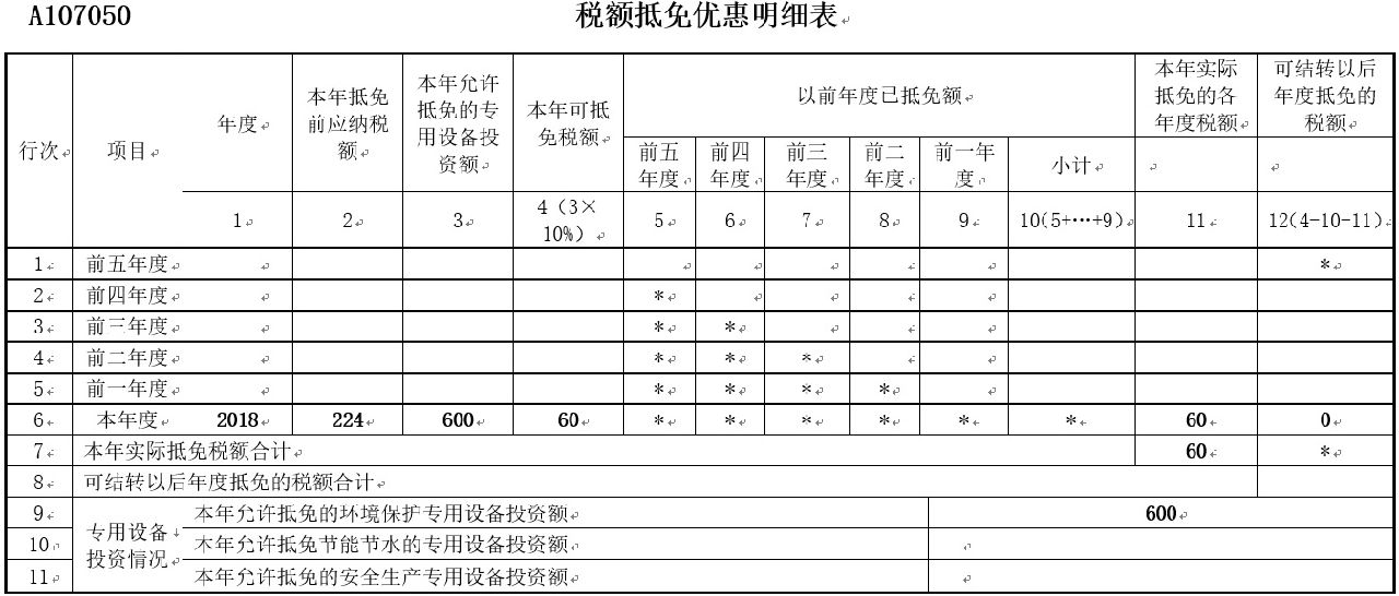 由于该设备为2018年购进,应填报到“2018年度”这一行。所以,2018年甲公司企业所得税汇算清缴时,相关报表填报如下(单位:万元):