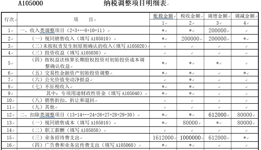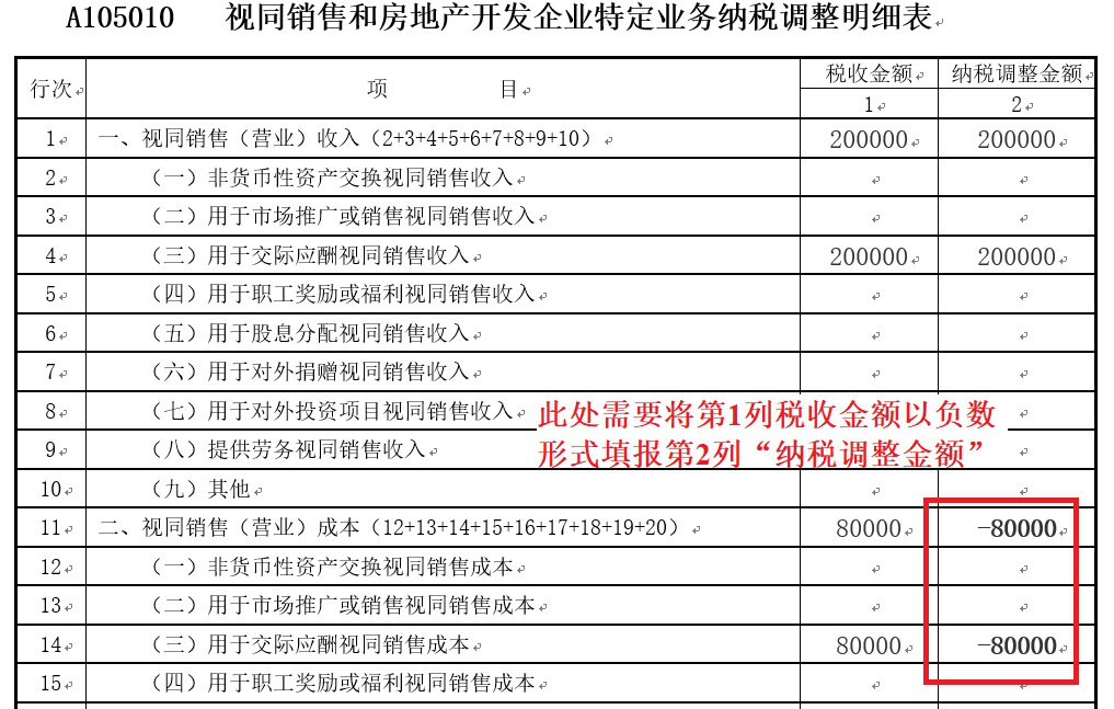 A105010 视同销售和房地产开发企业特定业务纳税调整明细表