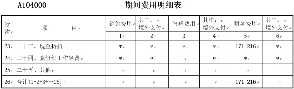 行次 | 项目 | 销售费用 | 其中:境外支付 | 管理费用 | 其中:境外支付 | 财务费用 | 其中:境外支付 |