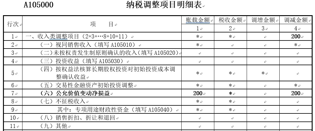 1 | 一、收入类调整项目(2+3+4+5+6+7+8+10+11) | * | * | 200 | |