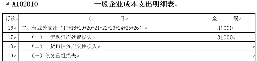 16 | 二、营业外支出(17+18+19+20+21+22+23+24+25+26) | 71000 |