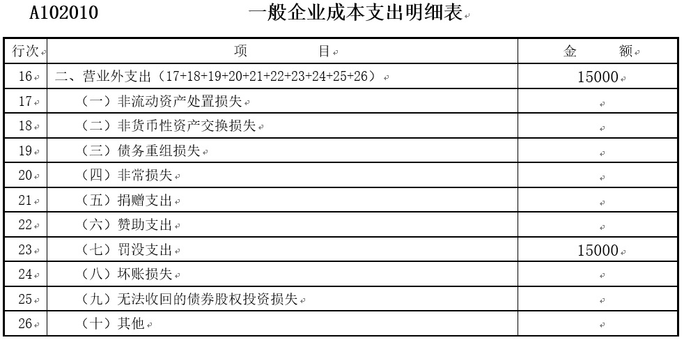 16 | 二、营业外支出(17+18+19+20+21+22+23+24+25+26) | 10000 |