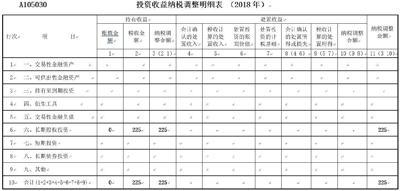 所以,2017年甲公司税法上不确认投资收益,应调减应纳税所额660万元。2018年被投资单位宣告分配时税法确认投资收益225万元,但当年会计上未确认投资收益,应调增应按税所得额225万元。