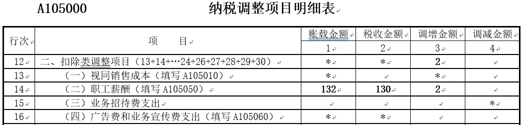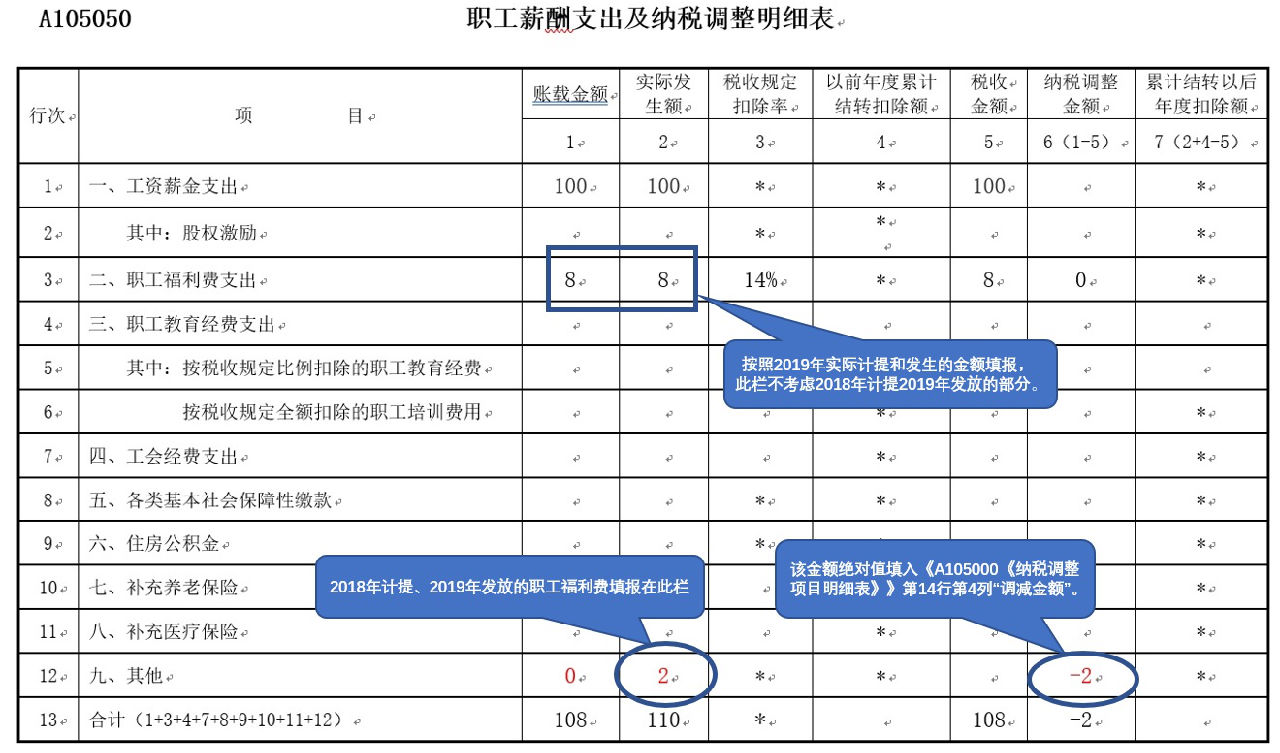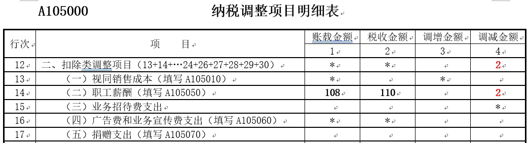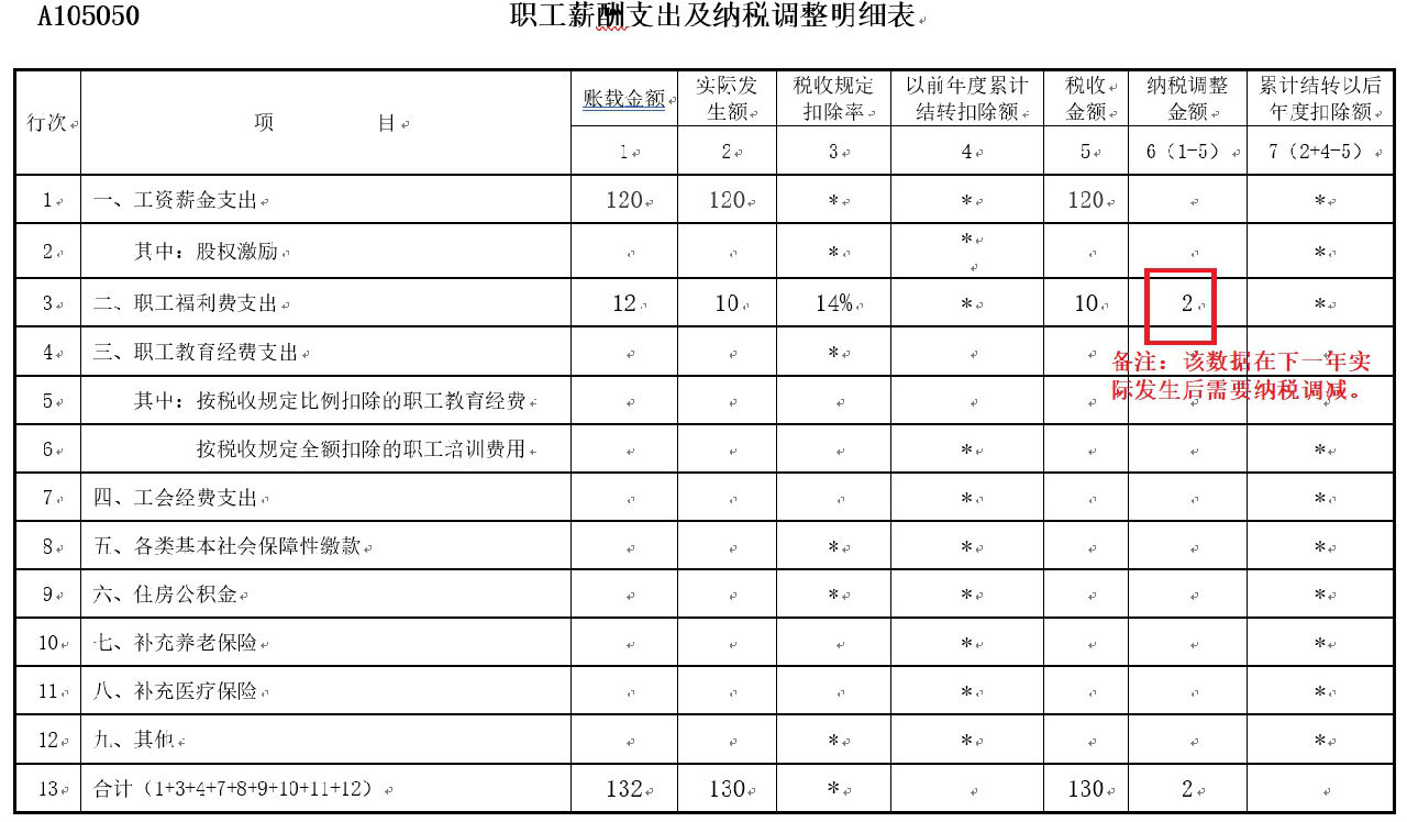 A105050 职工薪酬支出及纳税调整明细表 申报案例⑤