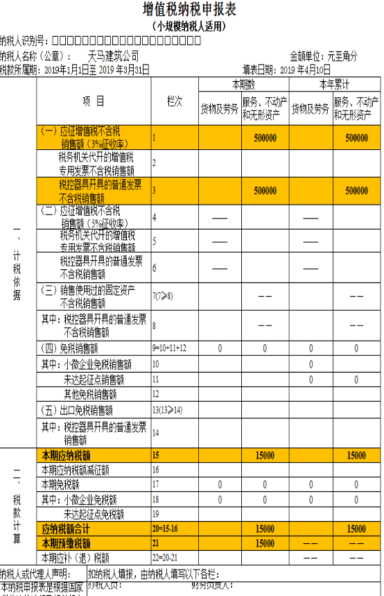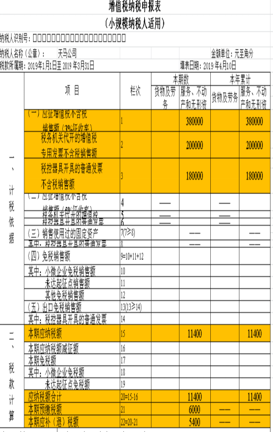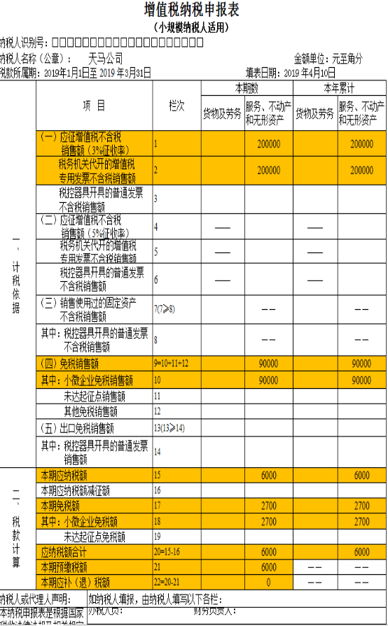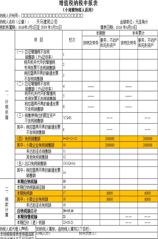 4.该纳税人是企业,免税销售额应填入“小微企业免税销售额”栏。(附件2、3)