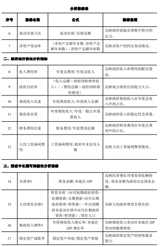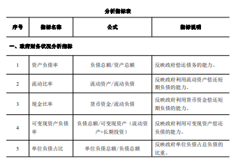 第二十五条 分析政府财政经济状况时,可参考使用以下分析指标: