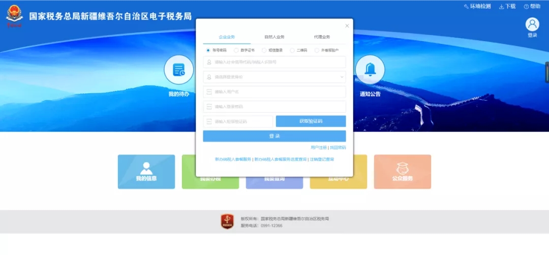 增值税发票综合服务平台(新疆)将启用新域名:https://fpdk.xinjiang.chinatax.gov.cn/,原综合服务平台域名https://fpdk.xj-n-tax.gov.cn/将停用。您可以通过以下两种方式登录增值税发票综合服务平台。