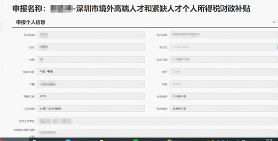 深圳市境外高端人才和紧缺人才2019年度个人所得税财政补贴申请指南