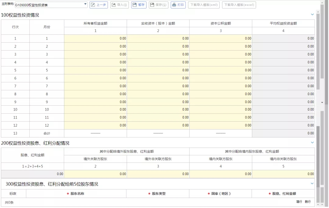 1.“100权益性投资情况”第1列“所有者权益金额”、第2列“实收资本(股本)金额”和第3列“资本公积金额”应按企业每月资产负债表加权平均金额填列,即(期初余额+期末余额)÷2。