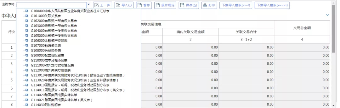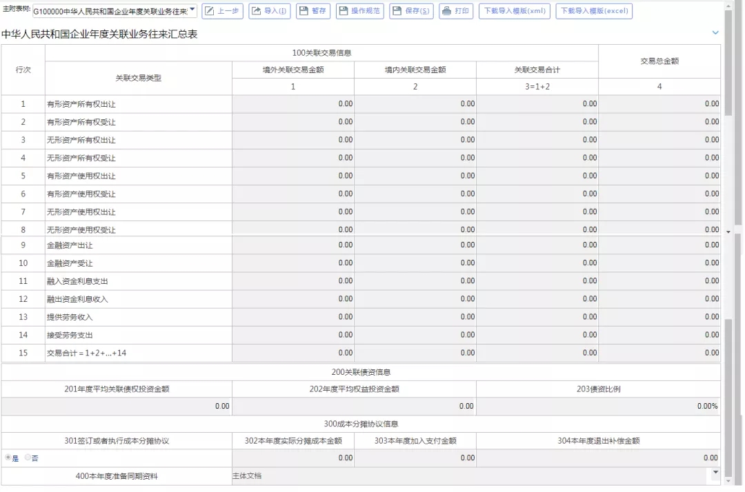 G100000《中华人民共和国企业年度关联业务往来汇总表》