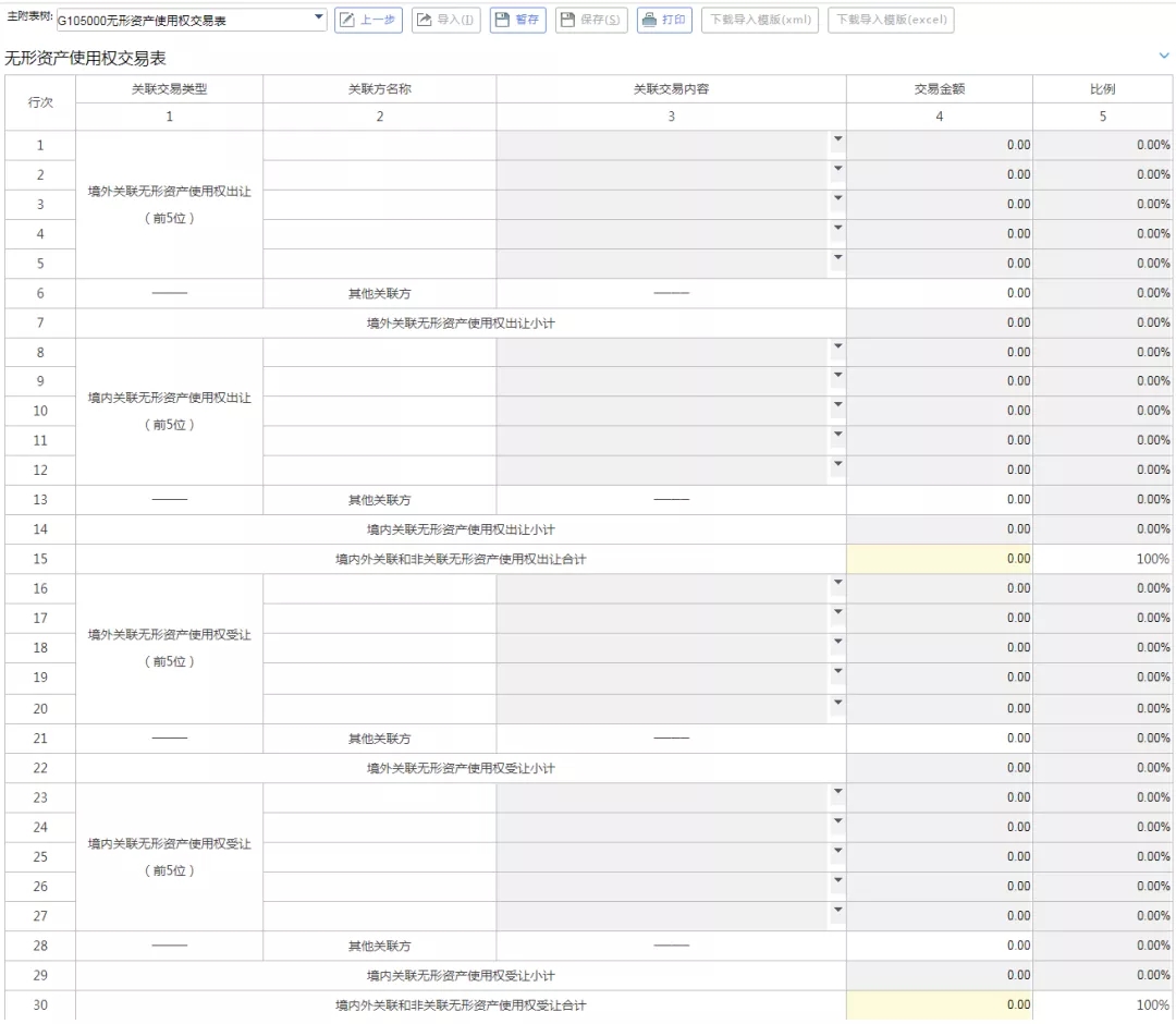 本表数据包括关联交易、关联债资、成本分摊协议、同期资料四部分信息,全部数值取自相应表格对应栏次,不用手工填写。