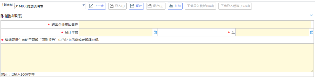 2.“跨国企业集团名称”和“会计年度”两项,应与G114010表“跨国企业集团名称”和“会计年度”两项填报数据一致。