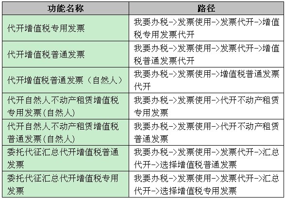 (二)2021年6月19日0点后,电子税务局上线新版发票代开相关功能,具体路径如下: