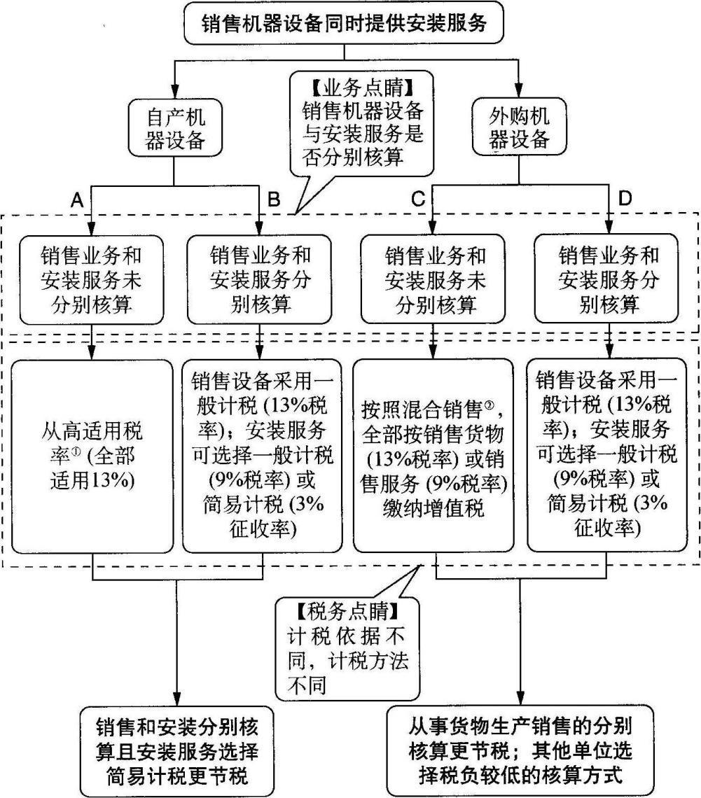 注①:纳税纳税人销售自产机器设备并提供安装服务不属于混合销售,应分别核算,未分别核算的,从高适用税率。
