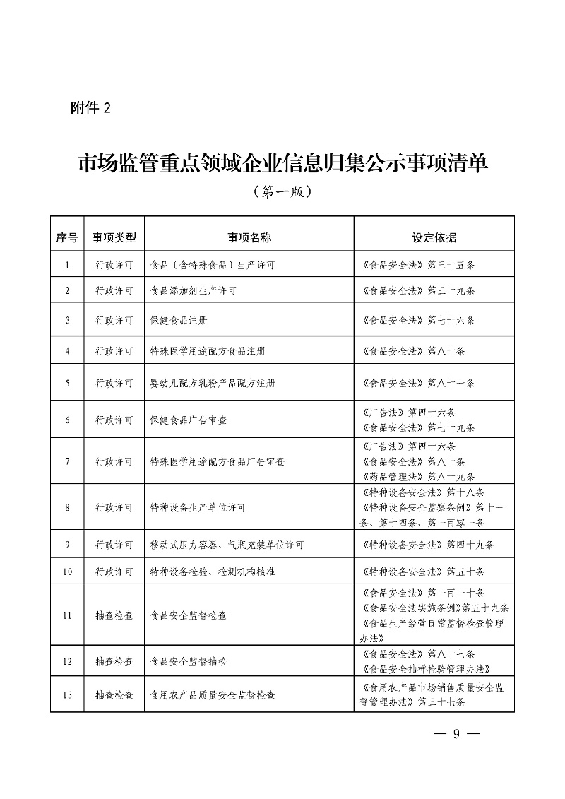 2.市场监管重点领域企业信息归集公示事项清单(第一版)