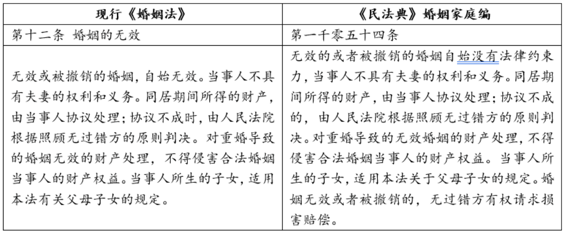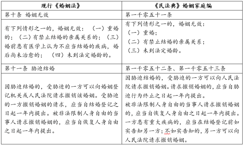 《婚姻法》《收养法》与《民法典》婚姻家庭编对照表