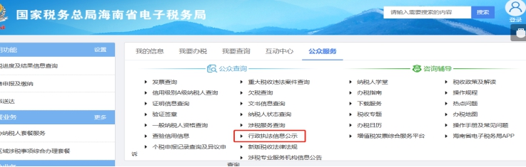 二、行政执法信息公示平台实现了与海南省电子税务局税务服务信息化媒介的互联互通。