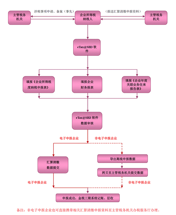 本市居民企业所得税汇算清缴申报方式包括网上申报和上门申报。其中,网上申报是指纳税人通过网上电子申报企业端软件(eTax SH3)进行申报;上门申报是指由于实际情况,纳税人不能正常进行网上申报时可直接携带汇算清缴相关材料到办税服务厅办理申报。
