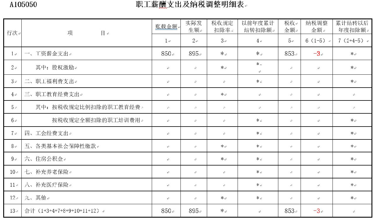 职工薪酬支出及纳税调整明细表(2018年)A105050