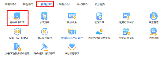 (一)成功登录后,进入企业办税模式,选择相应企业后,在右侧功能表中选择“我要办税”标签,单击“综合信息报告”,左侧菜单打开综合信息报告菜单,默认显示“身份信息报告”。