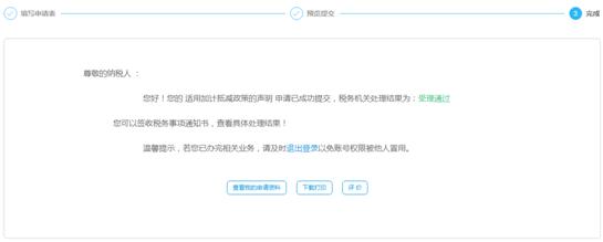 1、成功提交“适用加计抵减政策的声明”后,受理通过。