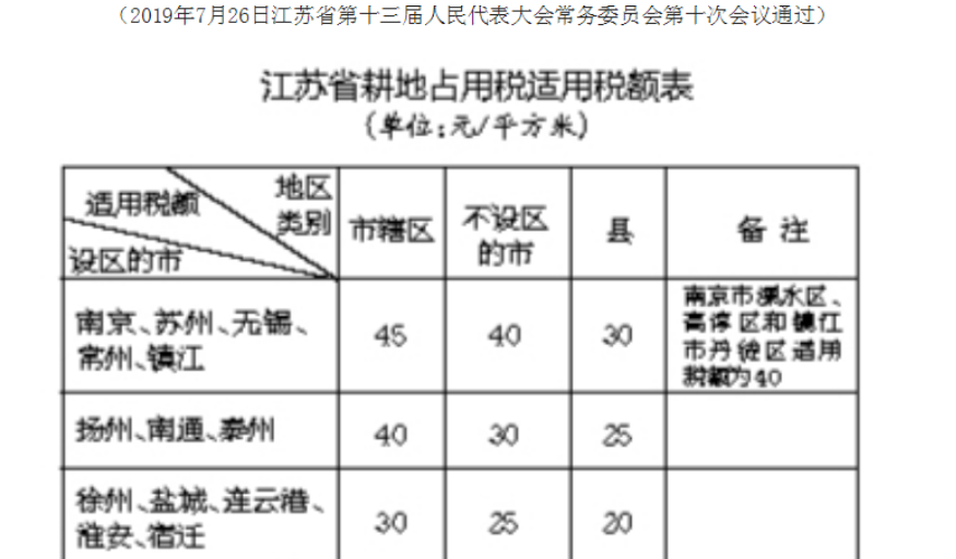 一、本省耕地占用税适用税额按《江苏省耕地占用税适用税额表》规定的税额标准执行。