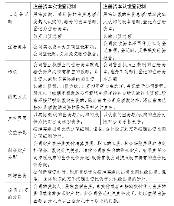 2014年2月7日,国务院印发《国务院关于印发注册资本登记制度改革方案的通知》(国发〔2014〕7号),决定实行注册资本认缴登记制。2018年10月26日第十三届全国人大常委会第六次会议《关于修改〈中华人民共和国公司法〉的决定》第四次修正)修改公司法,确立注册资本认缴登记制度(采取募集方式设立的股份有限公司以及商业银行、金融资产管理公司等27类行业的企业继续实行注册资本实缴登记制)。对注册资本认缴与实缴登记制度的相关规定做如下对比: