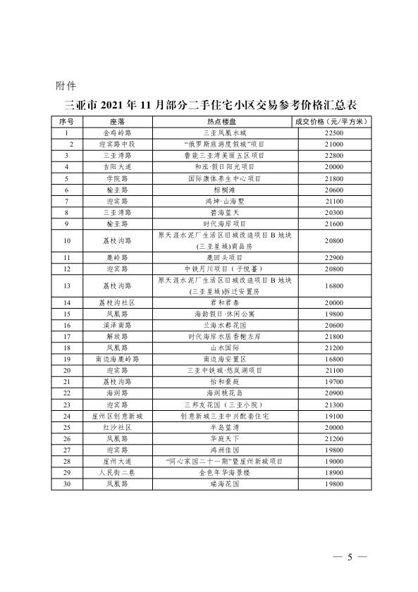 附件:三亚市2021年11月部分二手住宅小区交易参考价格汇总表