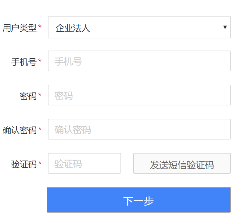 2、依次点击“登录--用户名登录--立即注册”,用户类型选择“企业法人”,输入您在实名认证时的手机号码和身份信息,根据提示完成注册。
